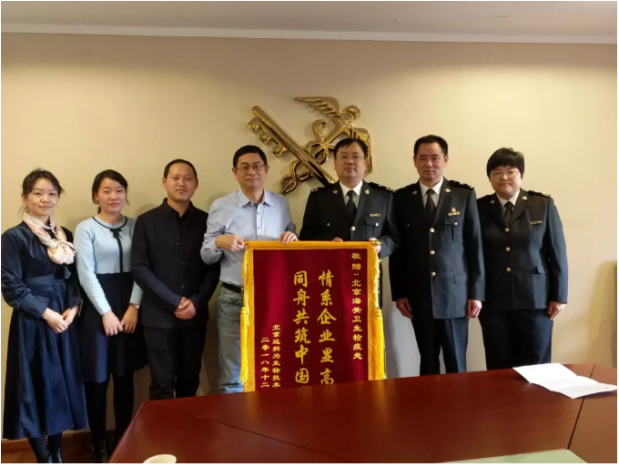 2018年12月19日達科為公司董事長吳慶軍攜公司主要人員拜訪了北京海關(guān),并送上“情系企業(yè)顯高效,同舟共筑中國夢”的錦旗和感謝信,對于北京海關(guān)衛(wèi)生監(jiān)督檢疫處依法辦事、高效廉政和熱情為企業(yè)服務(wù)的工作精神,表達了誠摯的敬意!北京海關(guān)副關(guān)長孫福軍、衛(wèi)生處處長黃建華、衛(wèi)生處副處長田睿共同接見。