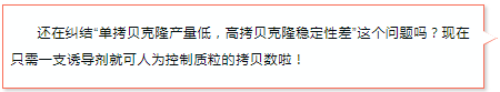 首先安利一下Epicentre的專利技術(shù)——CopyControl?克隆系統(tǒng),能夠讓您共享單拷貝和高拷貝的優(yōu)點(diǎn)。CopyControl?克隆:首先以單拷貝形式生長,單拷貝可以確保插入穩(wěn)定及成功克隆編碼基因序列;在需要的時(shí)候,通過誘導(dǎo)液誘導(dǎo)成高拷貝克隆,以便下游應(yīng)用所需。這一系統(tǒng)可以用來構(gòu)建PCR克隆,對于BAC,F(xiàn)osmid文庫等大型質(zhì)粒格外有用。