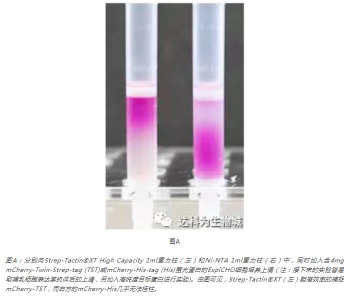 圖A比較了His-tag與Strep-tag?直接加入哺乳細胞培養(yǎng)上清純化目標(biāo)蛋白的表現(xiàn)。
