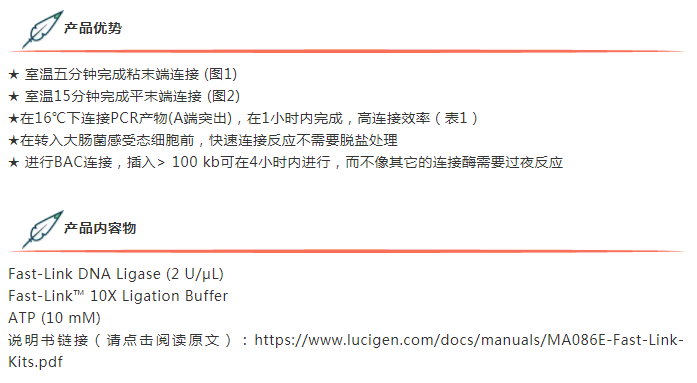 五分鐘完成粘末端連接?Fast-Link? DNA Ligation Kit,您值得擁有!