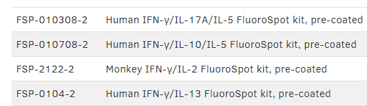 ☆Mabtech公司研發(fā)了能夠用于人、小鼠和非人靈長(zhǎng)類來(lái)源樣本的FluoroSpot試劑盒