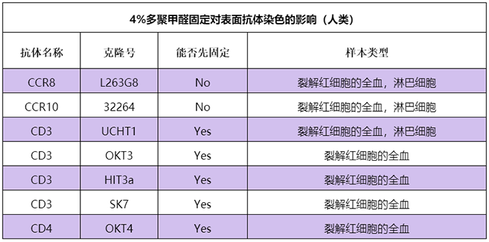 如果我們的流式實(shí)驗(yàn)要求對樣本進(jìn)行預(yù)先固定的處理,那實(shí)際上這就需要提前去驗(yàn)證染色方案里所選的克隆是否適用于先固定后染色,這也有一定工作量。推薦大家參考借鑒BioLegend關(guān)于固定的專題,里面有做了很多克隆能否適用于先固定后染色的驗(yàn)證。