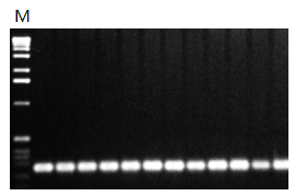 △Fig 2 .使用FailSafe?PCR PreMix K擴增Fig 1中的人的ApoE gene片段。M:molecular marker。